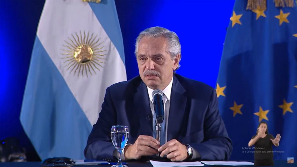 «Es hora de una vez por todas que unamos fuerzas y no caigamos en mundos de discursos únicos, respetemos la multilateralidad y crezcamos juntos. Esa es la obligación que tenemos», expresó Fernández al hablar esta mañana ante los cancilleres y representantes de los dos bloques.