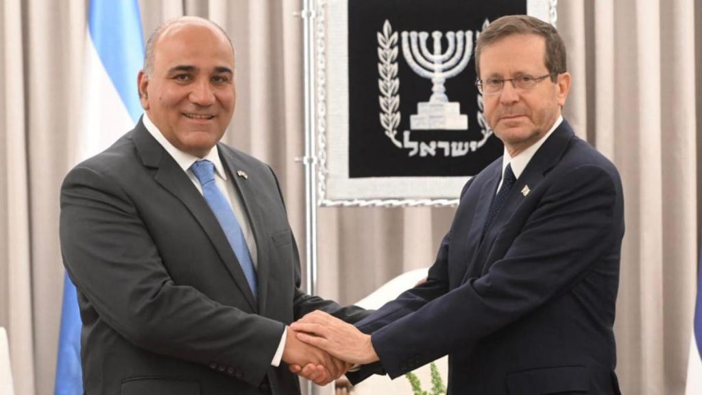 El jefe de Gabinete, Juan Manzur, se reunió este domingo con el presidente del Estado de Israel, Isaac Herzog, con quien analizó los «lazos históricos» entre ambas naciones y el fortalecimiento de los vínculos en diversas áreas, como parte de las actividades programadas con motivo de una visita que realiza a ese país.
