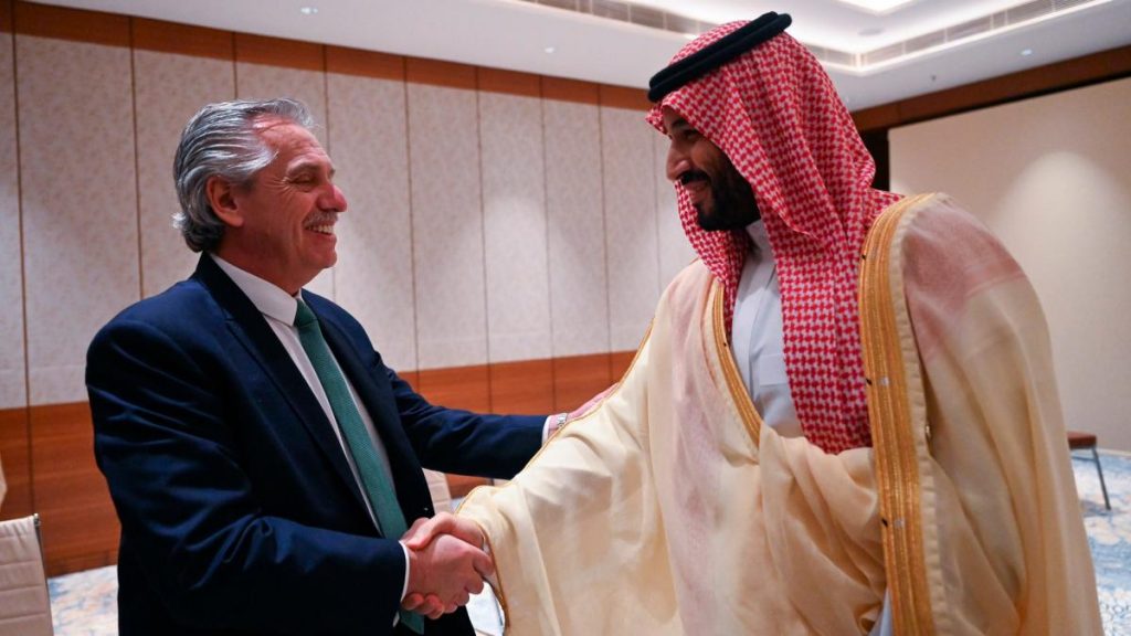 El presidente Alberto Fernández valoró este domingo el avance continuo de la relación bilateral entre la Argentina y Arabia Saudita, un vínculo que abriría la posibilidad de explorar acuerdos de inversión en materia energética y profundizar la diversificación comercial entre ambos países.