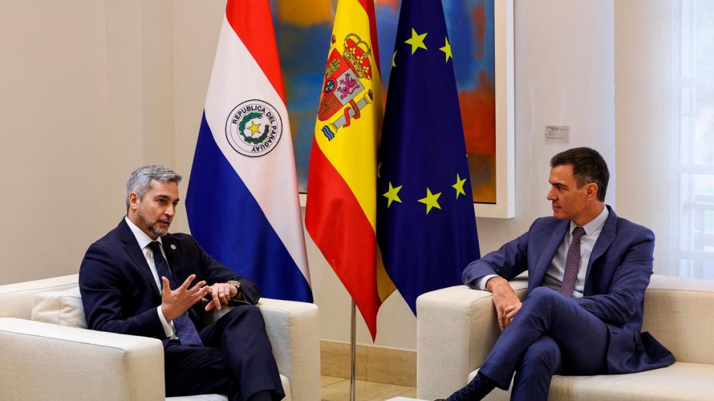 «Los presidentes Sánchez y Abdo consideraron como prioritarias la firma y conclusión del Acuerdo UE-Mercosur y la cumbre UE- Celac (Comunidad de Estados Latinoamericanos y Caribeños)», indicó un comunicado de la presidencia española.