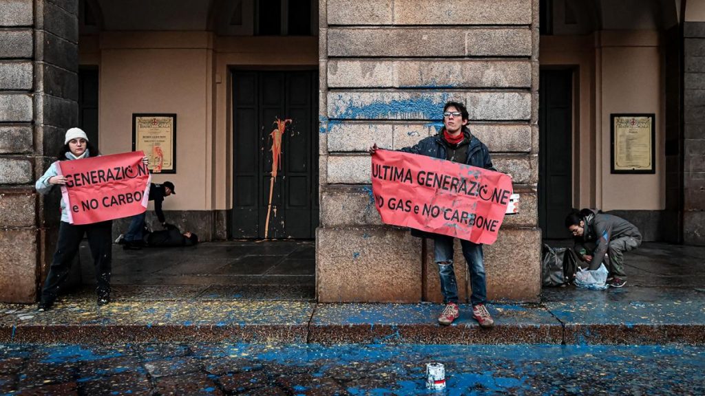 La policía de la norteña ciudad italiana de Milán detuvo este miércoles a cinco activistas del grupo «Última generación» que atacaron el Teatro de La Scala con pintura, portando una bandera con consignas ambientalistas.
