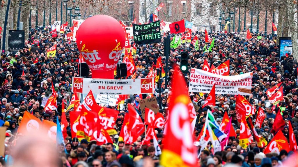 Amparados en altas cifras de rechazo a la medida y tras la mayor manifestación contra una reforma social en tres décadas, con entre 1,27 y 2,8 millones de personas en las calles el 31 de enero, los sindicatos libran su ofensiva con paros y protestas pacíficas.