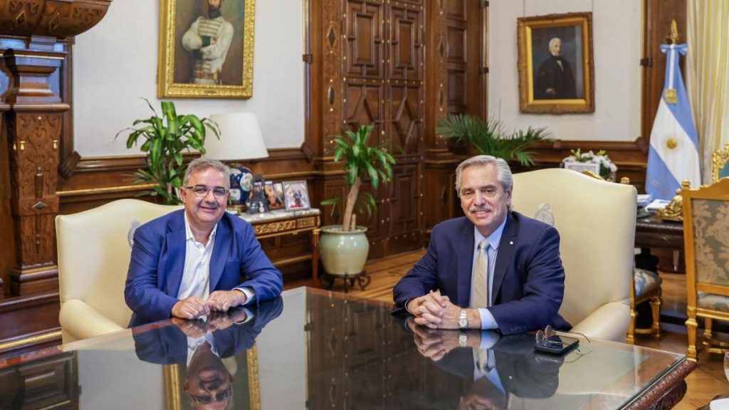 El presidente Alberto Fernández se reunió hoy con el gobernador de Catamarca, Raúl Jalil, para repasar las obras que realiza el Gobierno nacional en esa provincia y analizar la situación de la región del Norte Grande.